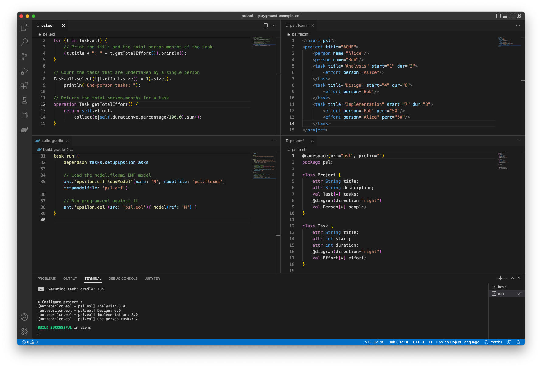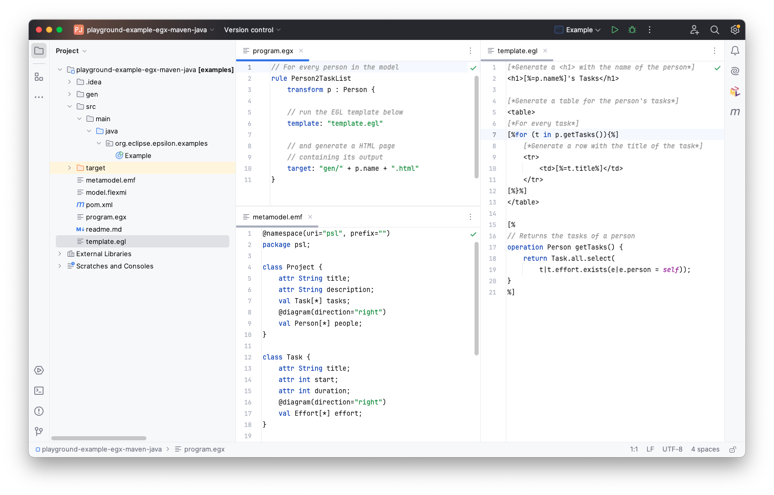 Download the following transformations from the Epsilon Playground and run them in your Java IDE of choice as discussed here.